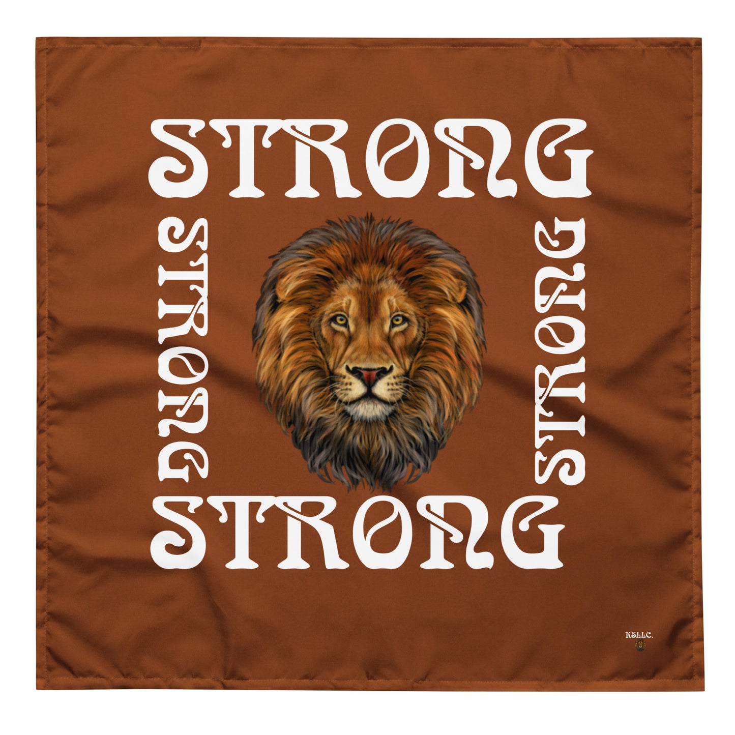 “STRONG” Brown All-Over Print Bandana W/White Square Font