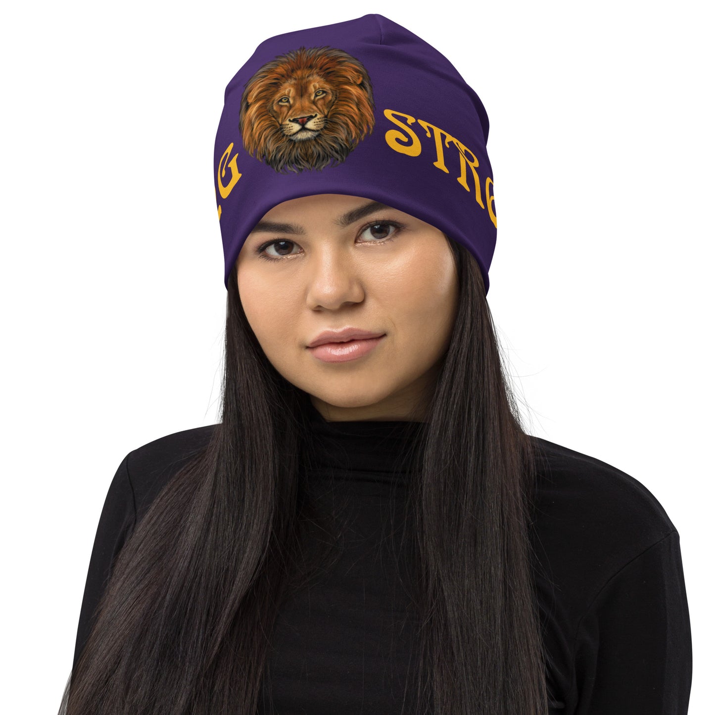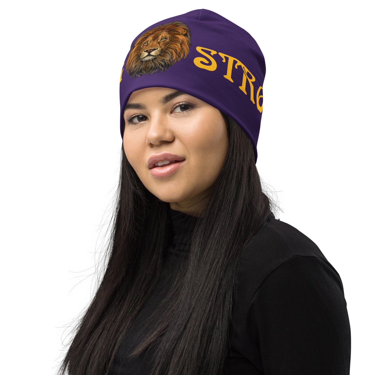 “STRONG”Purple All-Over Print Beanie W/Yellow Font