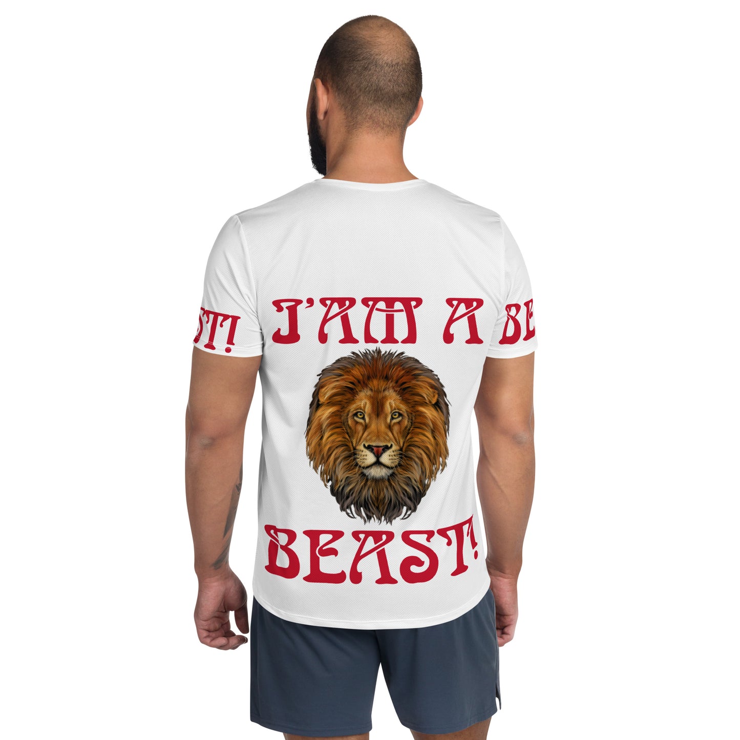 “I’AM A BEAST!”White Men's Athletic T-Shirt W/Red Font