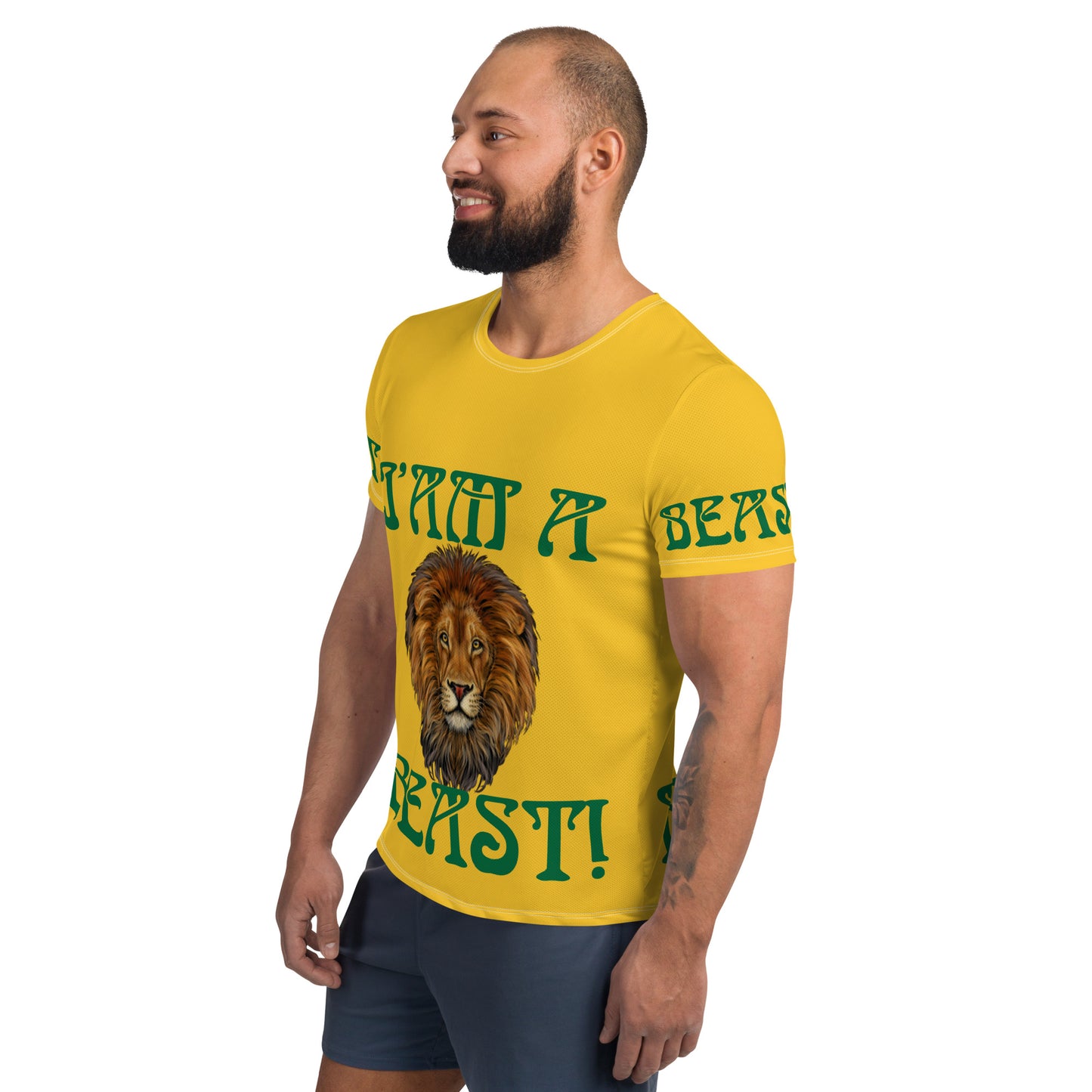 “I’AM A BEAST!”Yellow Men's Athletic T-Shirt W/Green Font