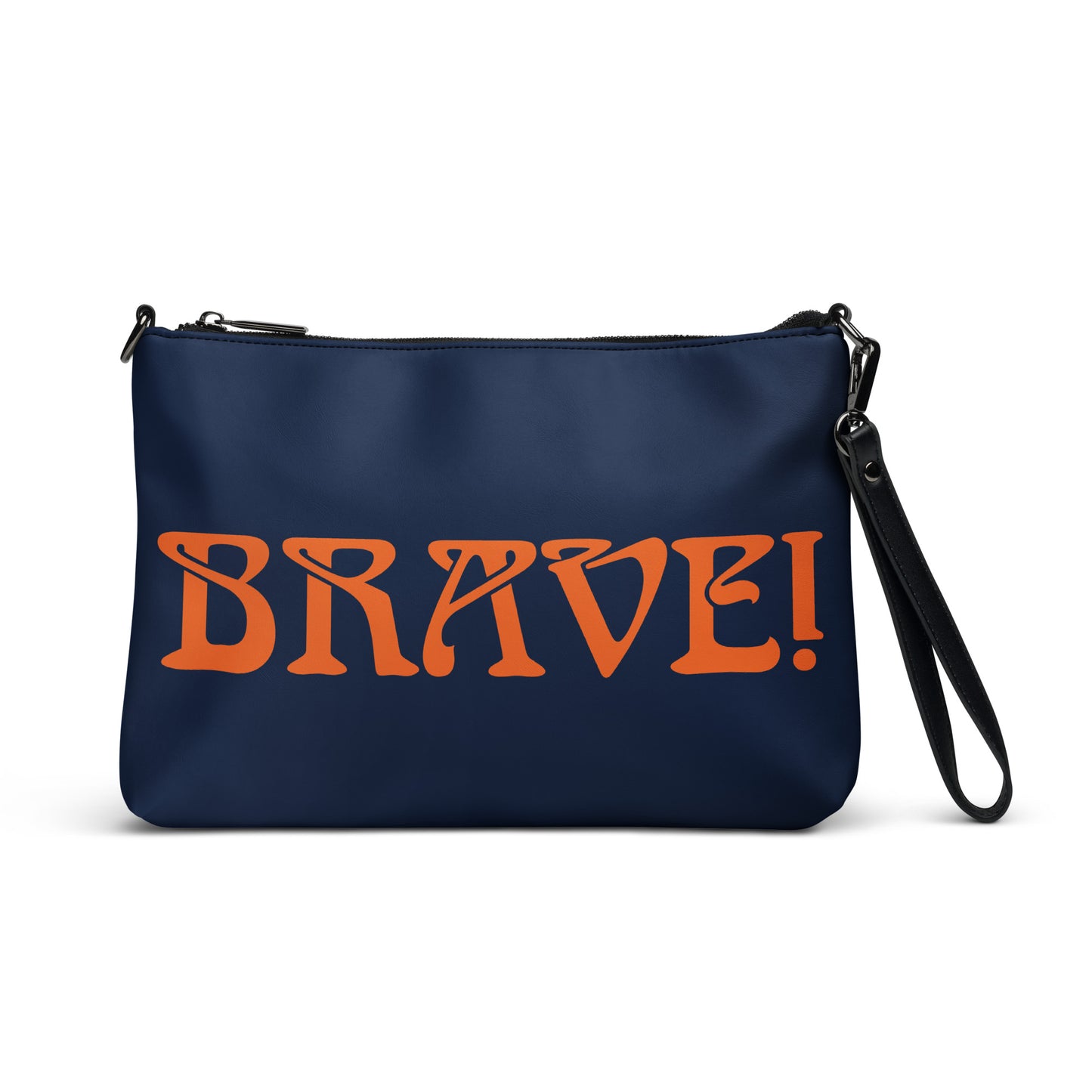 “BRAVE!”Navy Crossbody Bag W/Orange Font