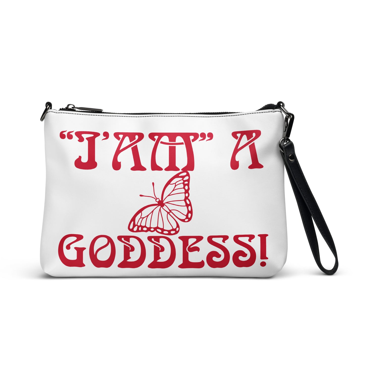 “I’AM” A GODDESS!” White Crossbody Bag W/Red Font