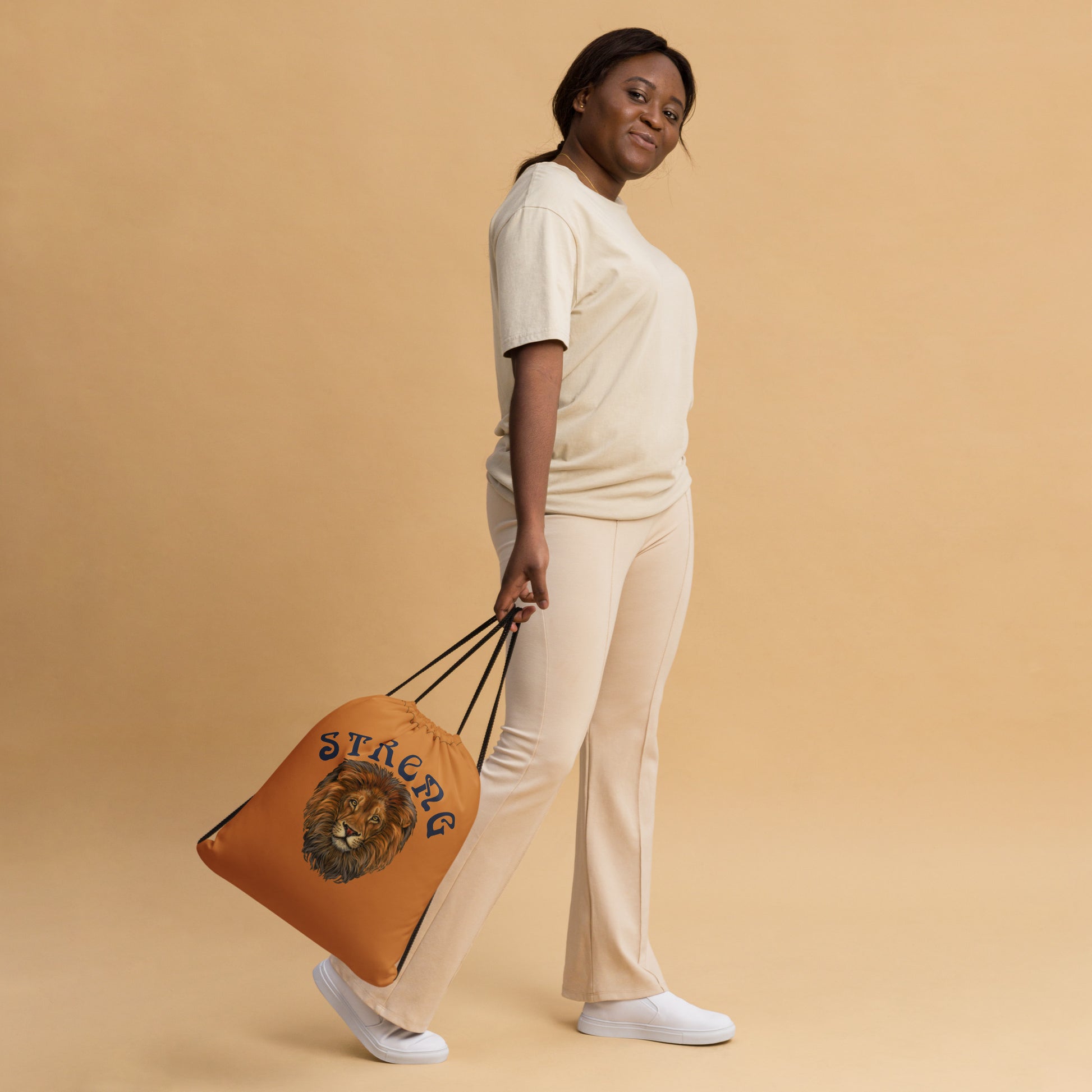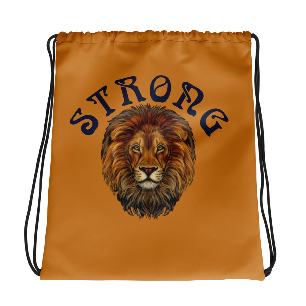 “STRONG”Bronze Drawstring Bag W/Navy Font