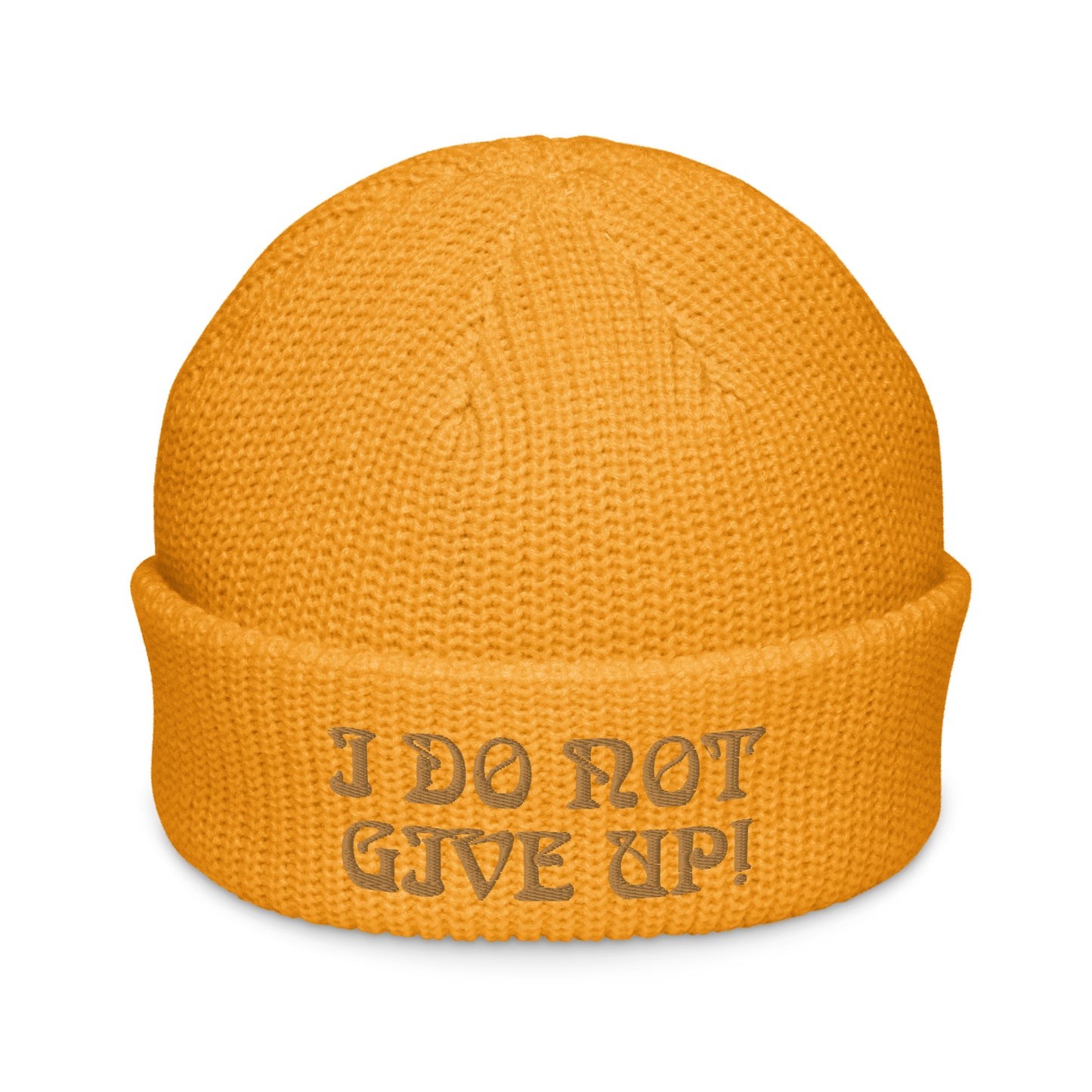 “I DO NOT GIVE UP!”Fisherman Beanie W/Gold Font