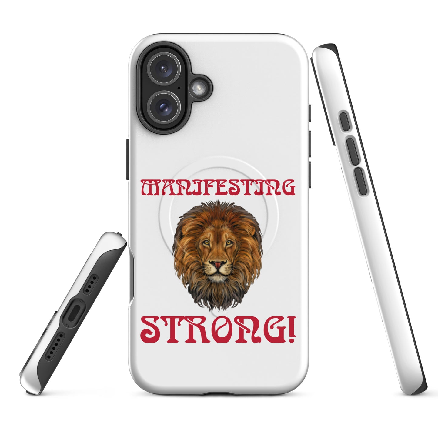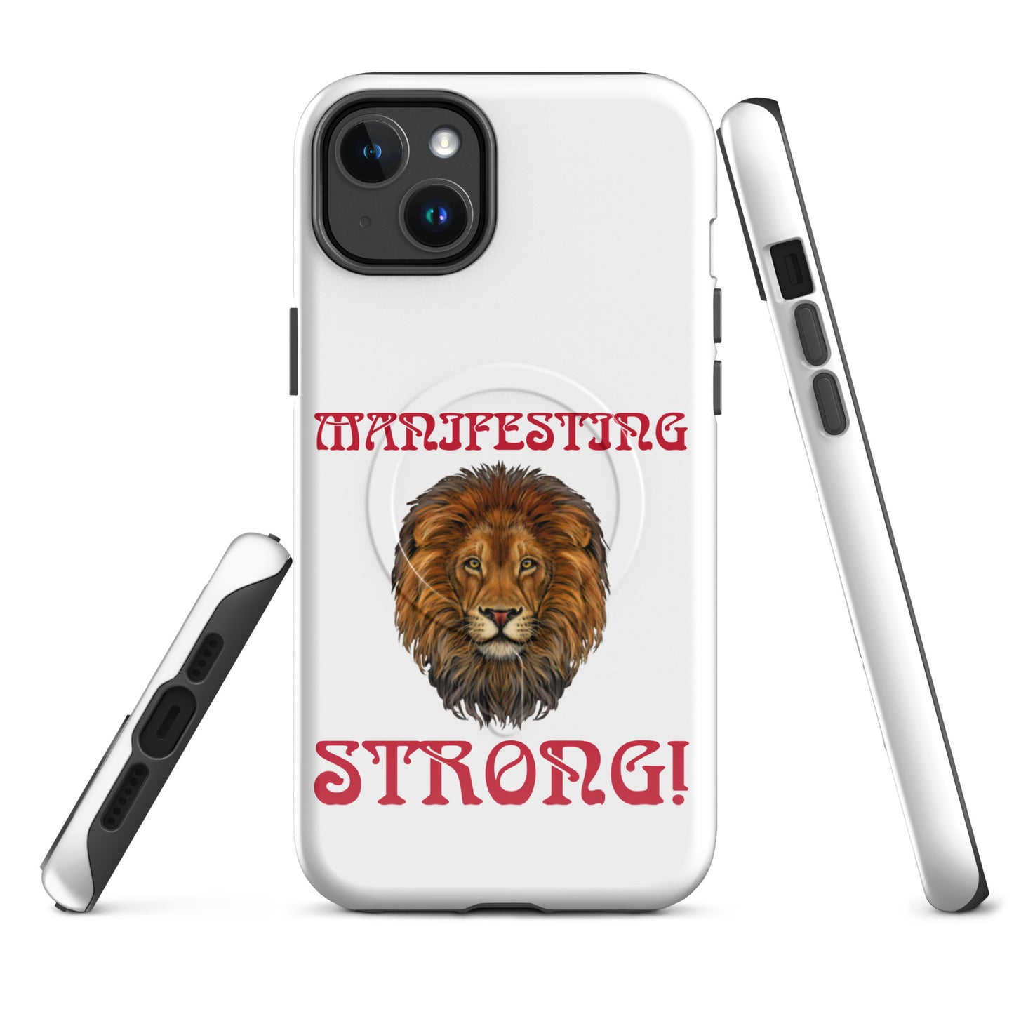“MANIFESTING STRONG!”White MagSafe® Tough Case For iPhone® W/Red Font
