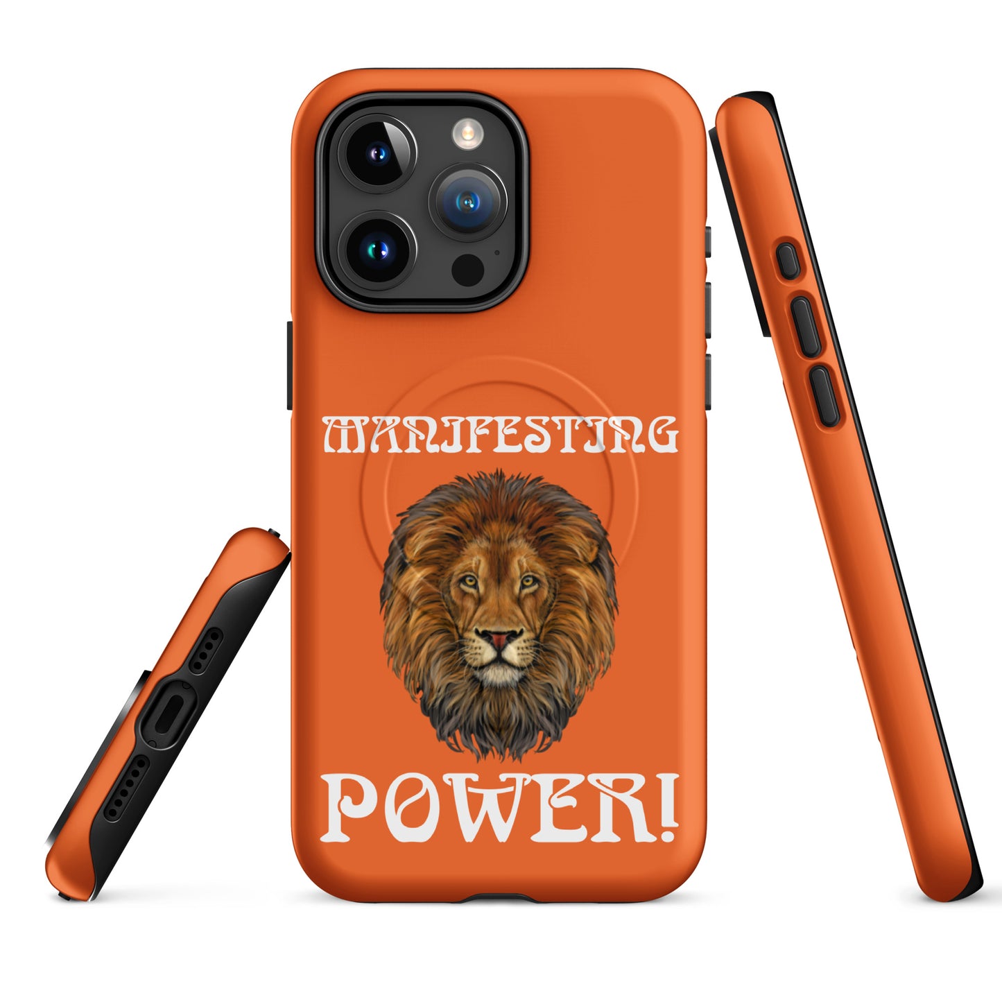 “MANIFESTING POWER!”Orange MagSafe® Tough Case for iPhone® W/White Font