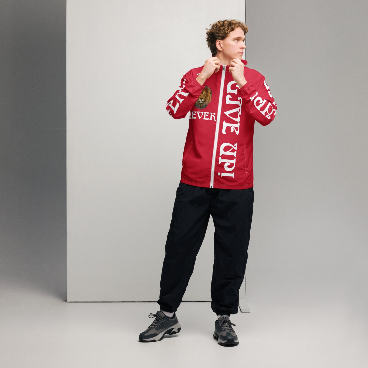 “I NEVER GIVE UP!”Red Unisex Windbreaker W/White Font