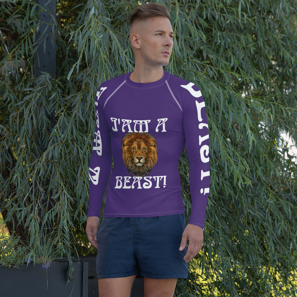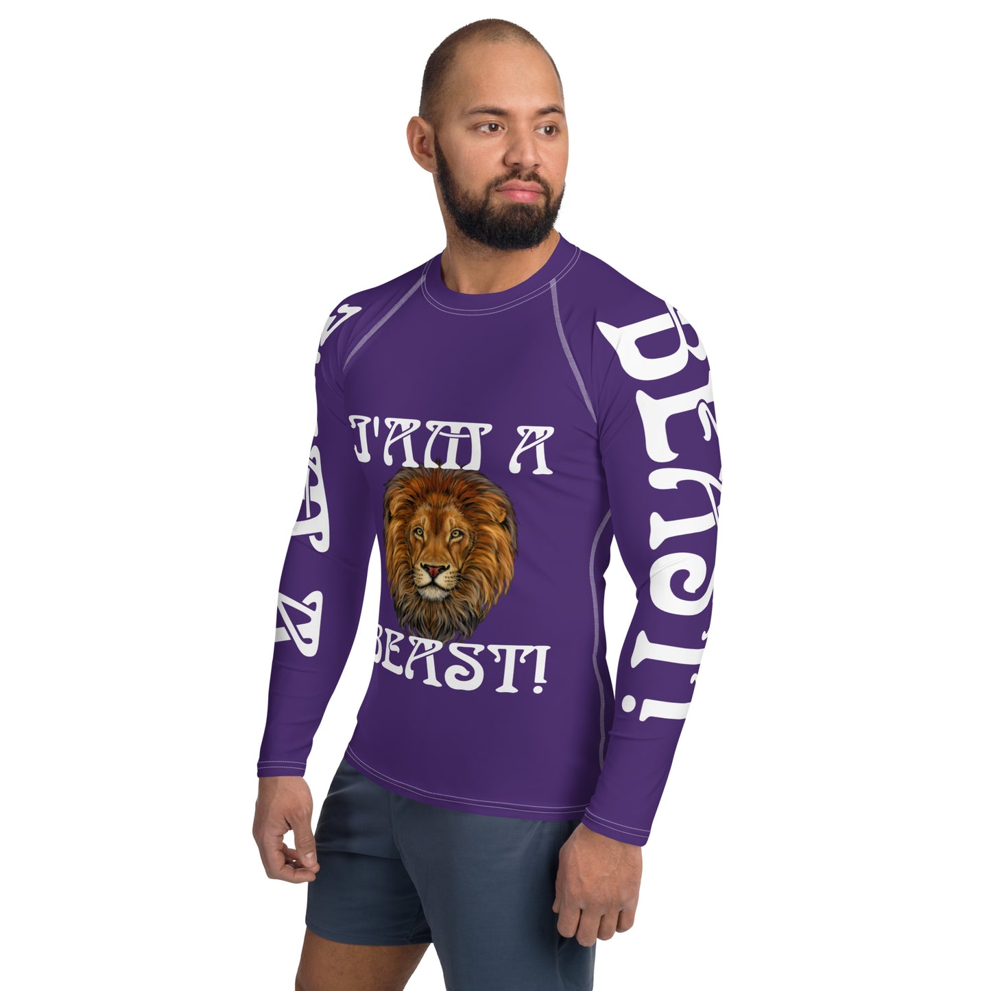 “I’AM A BEAST!”Purple Men's Rash Guard W/White Font