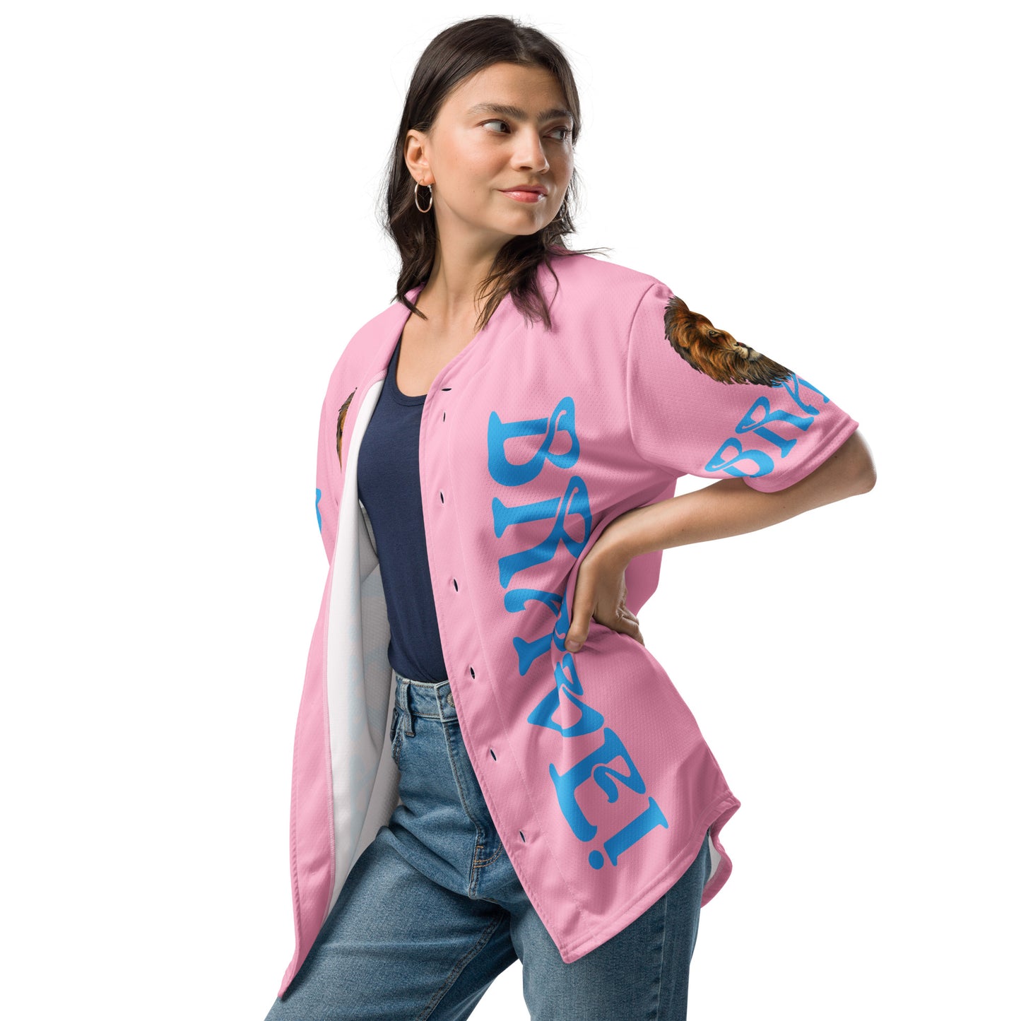 “I’AM BRAVE!”Cotton Candy Unisex Baseball Jersey W/SkyBlue Font