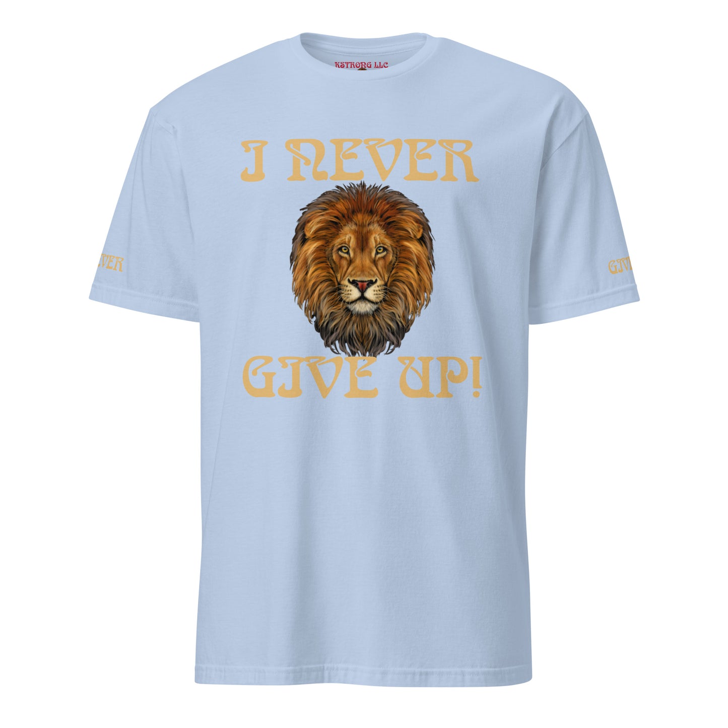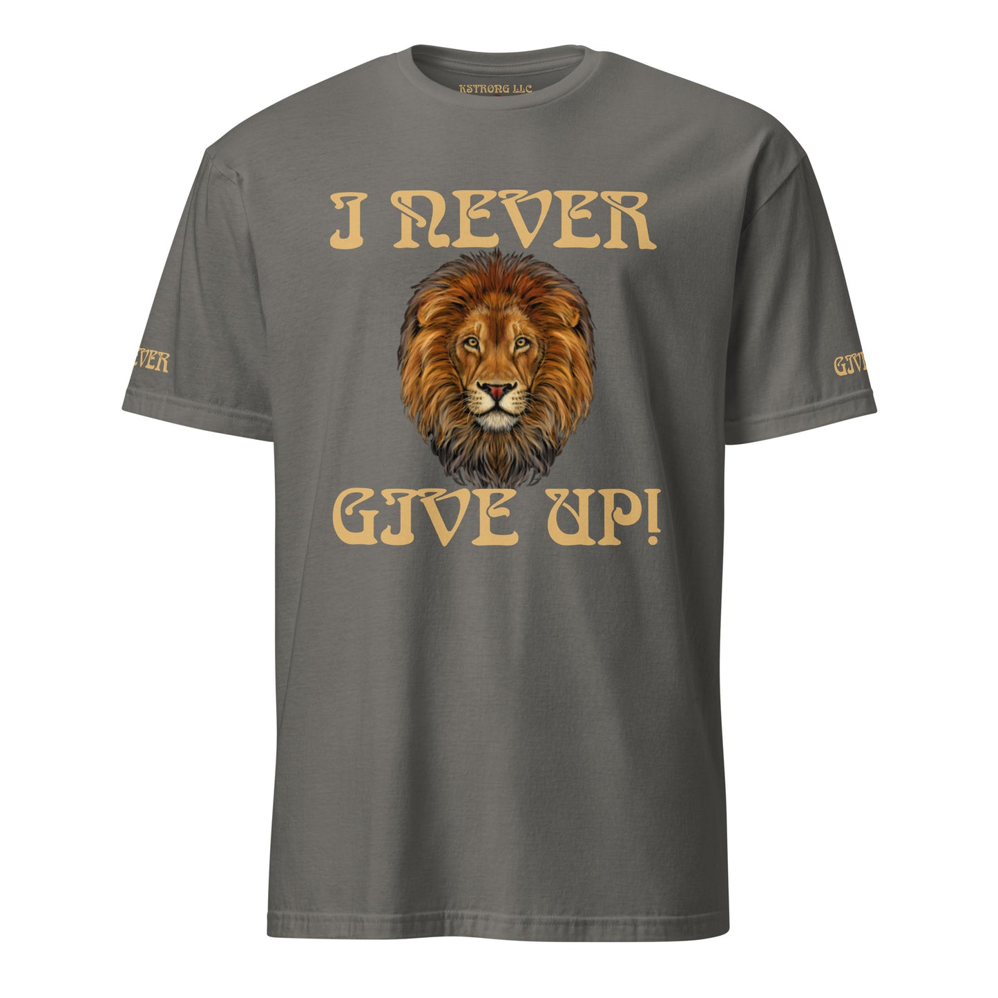 “I NEVER GIVE UP!”Short-Sleeve Unisex T-Shirt W/Fawn Font