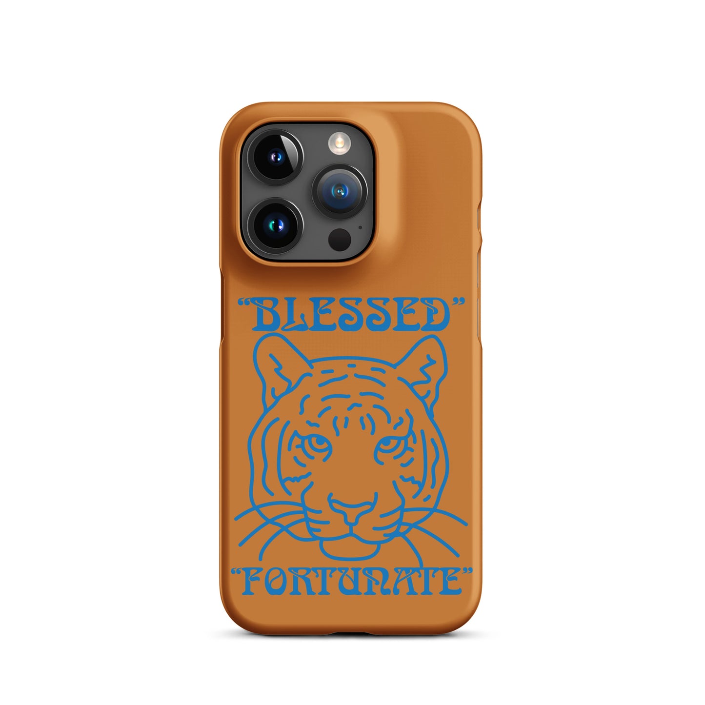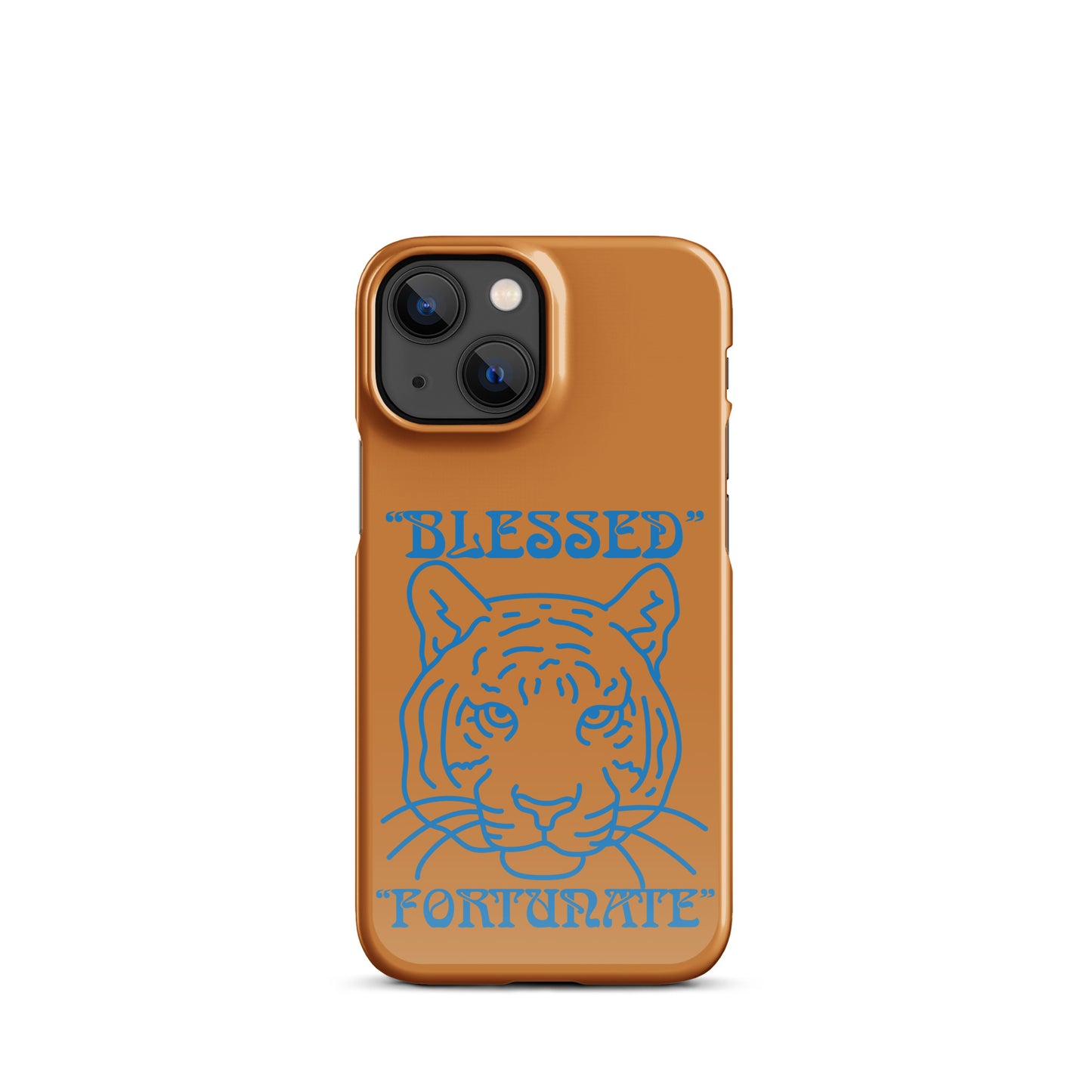 “BLESSED,FORTUNATE”Bronze Snap Case for iPhone® W\SkyBlue Font