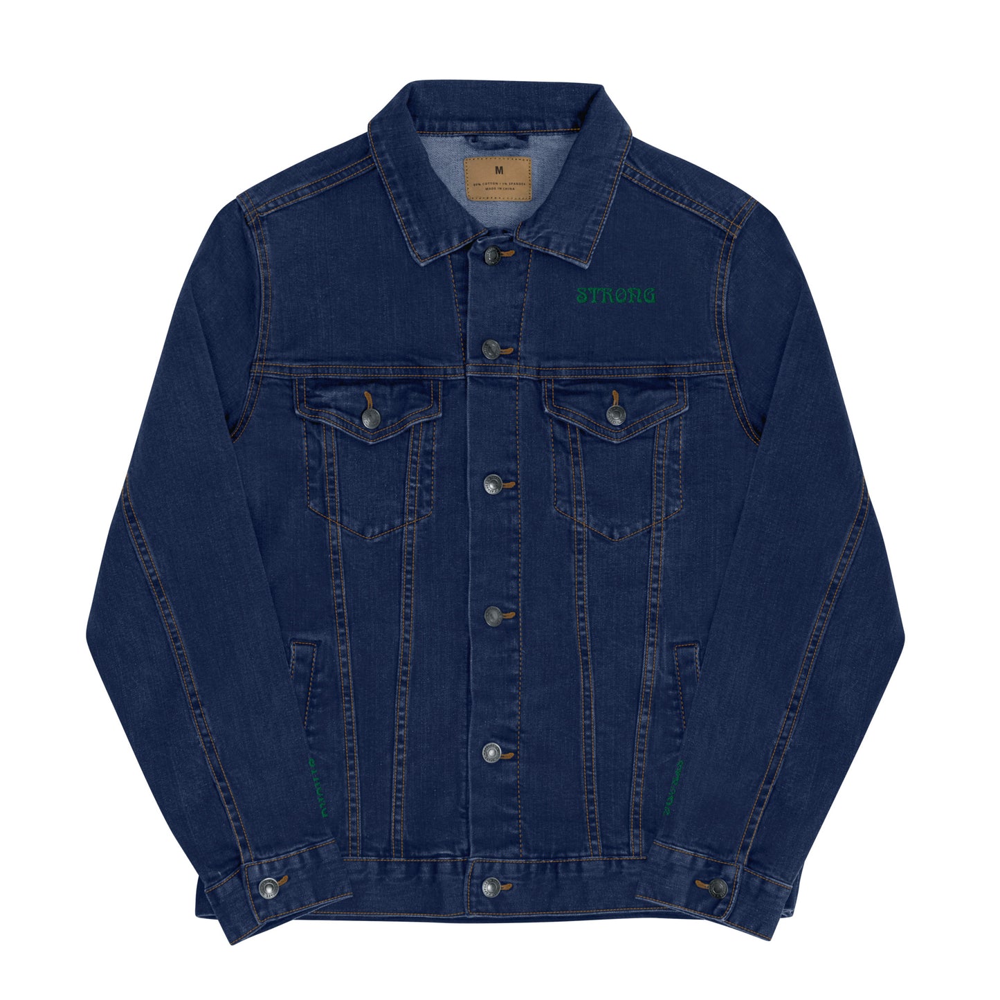 “IAM STRONG”Unisex Denim Jacket W/Green Font