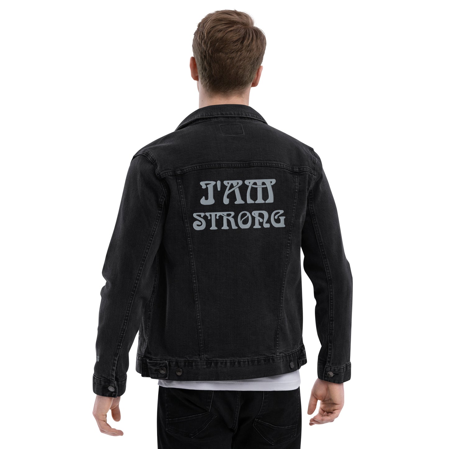 “IAM STRONG”Unisex Denim Jacket W/Silver Font