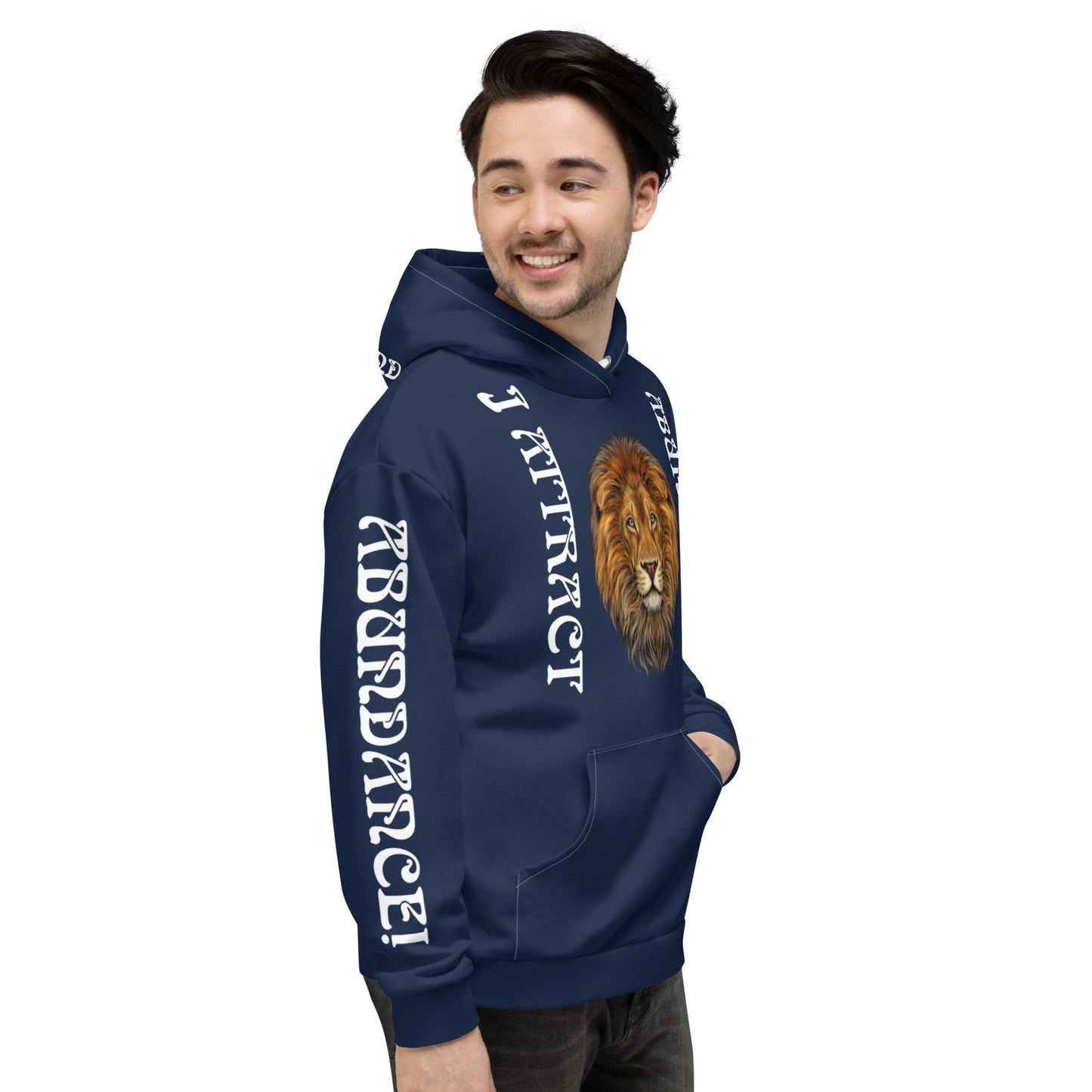 “I ATTRACT ABUNDANCE!"Navy Unisex Hoodie W/White Font