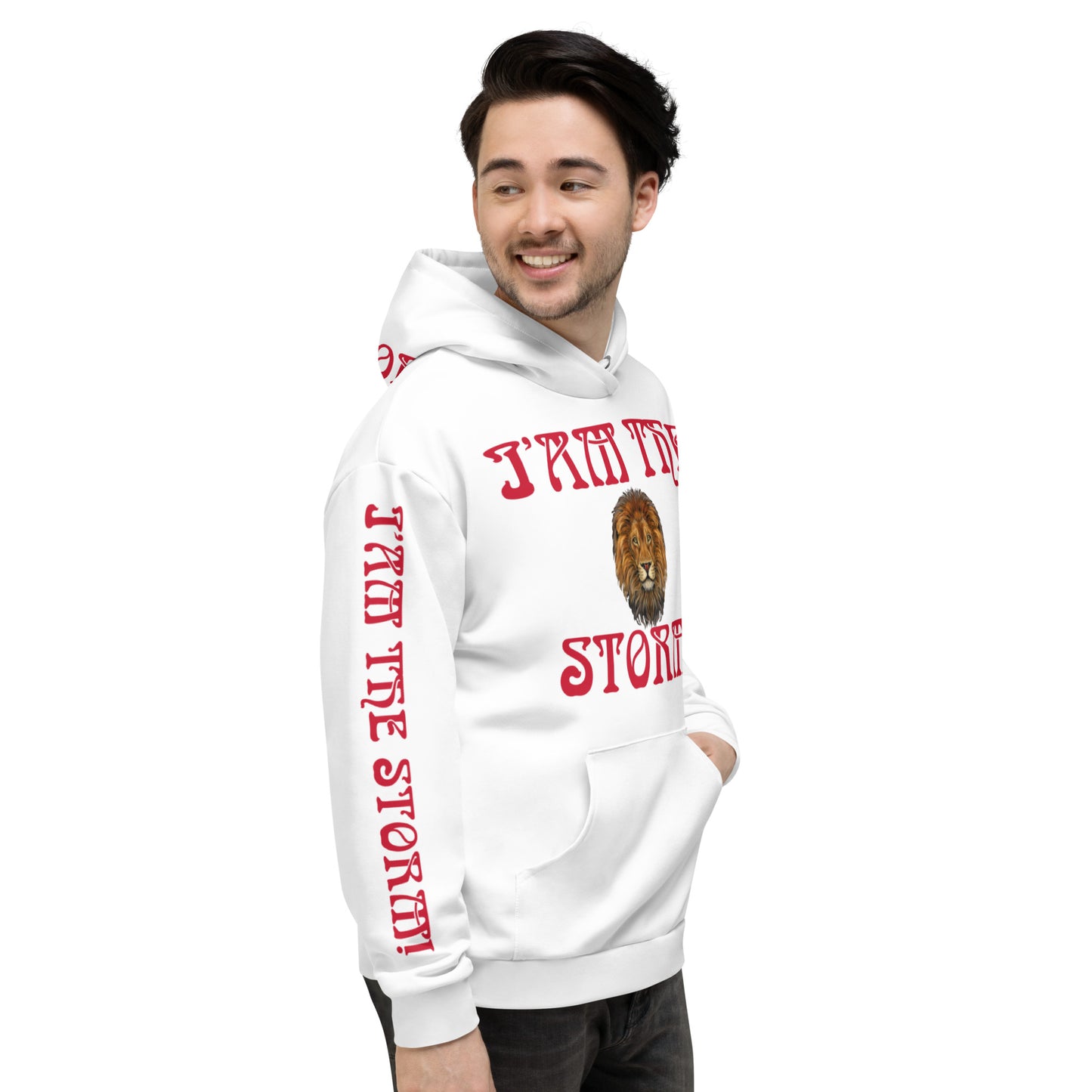 “I’AM THE STORM!"White Unisex Hoodie W/Red Font