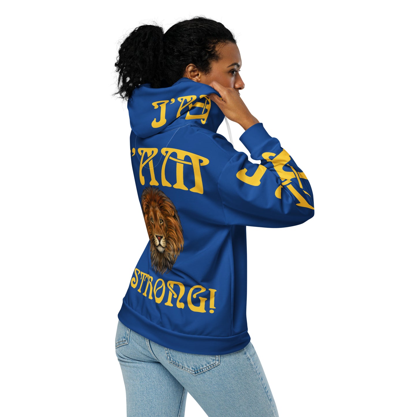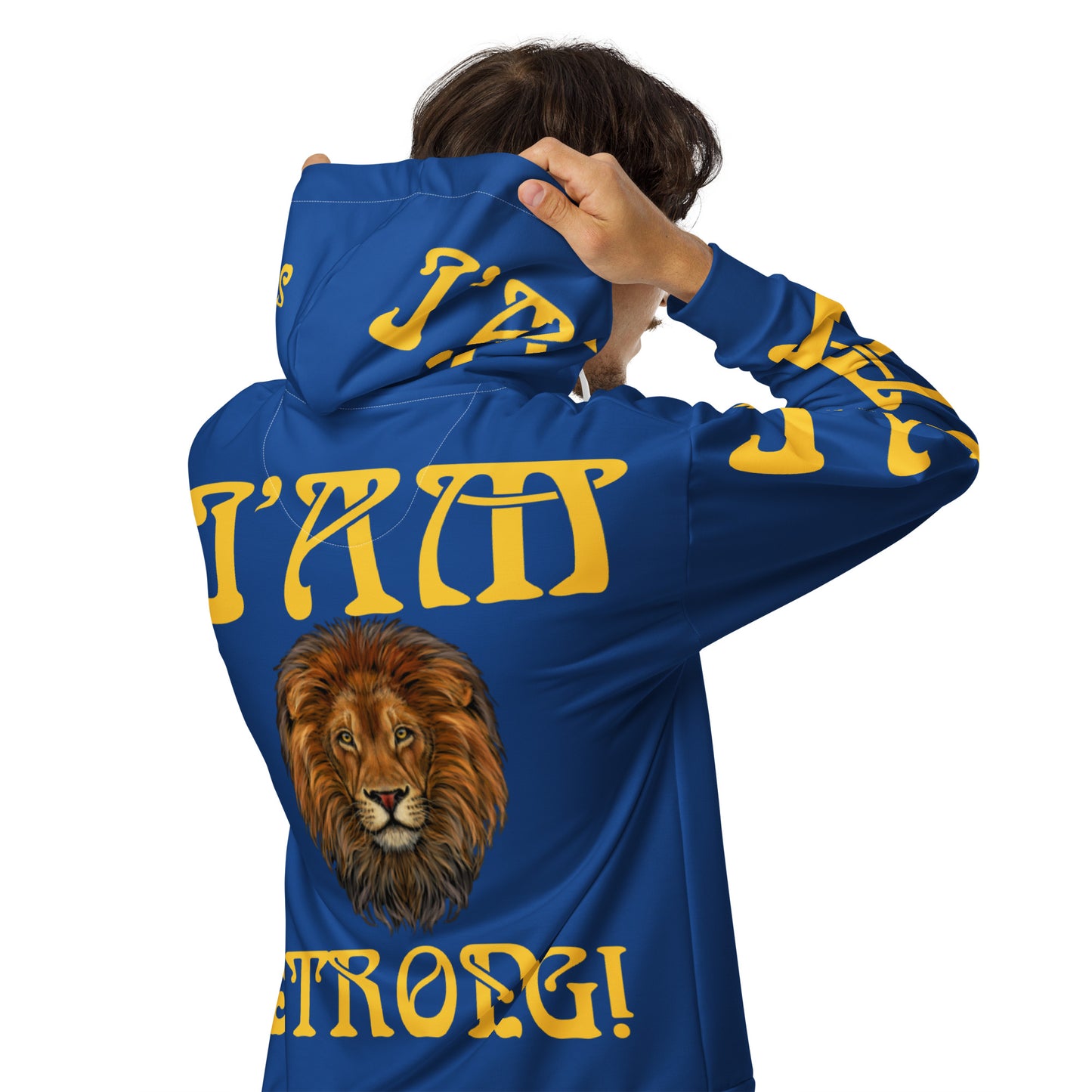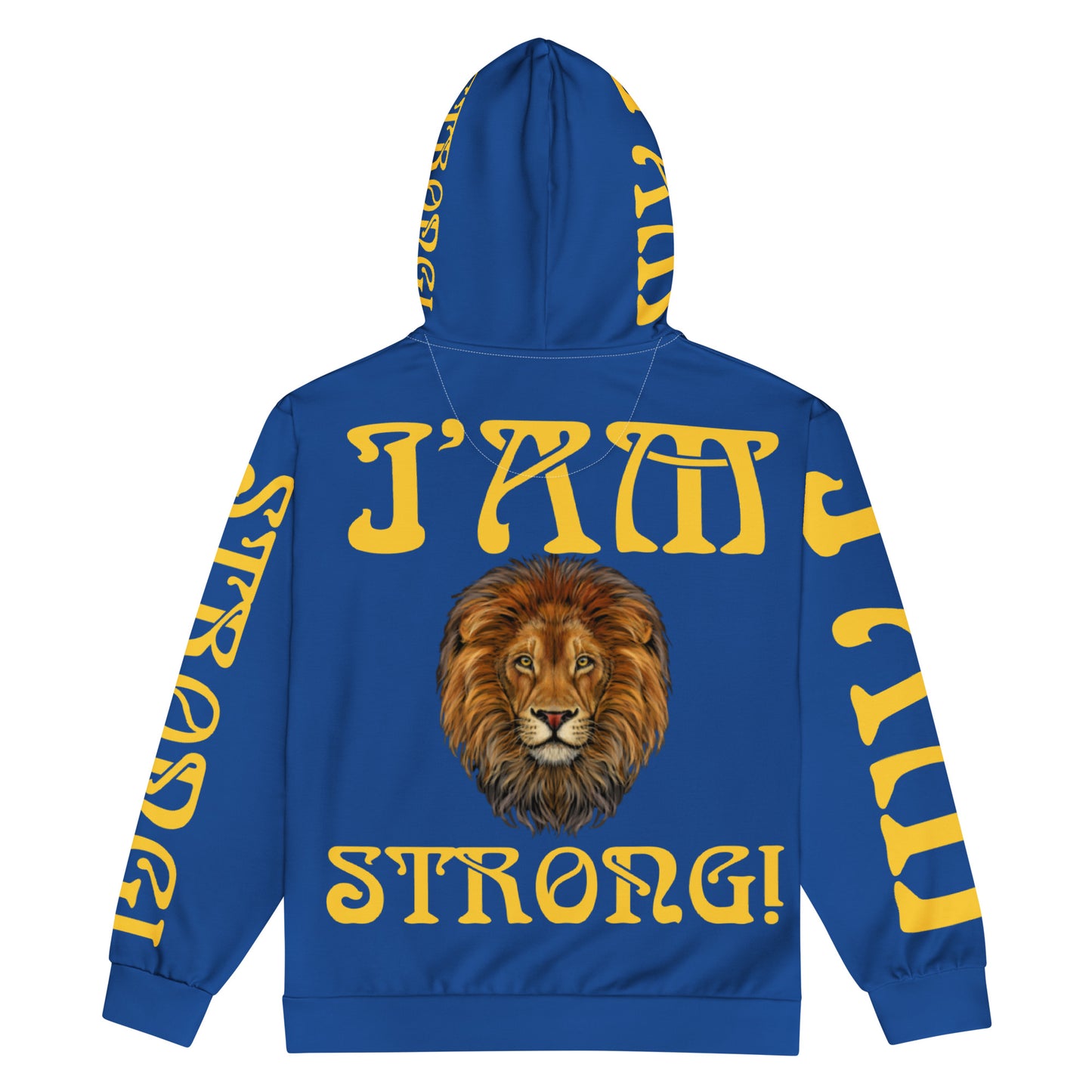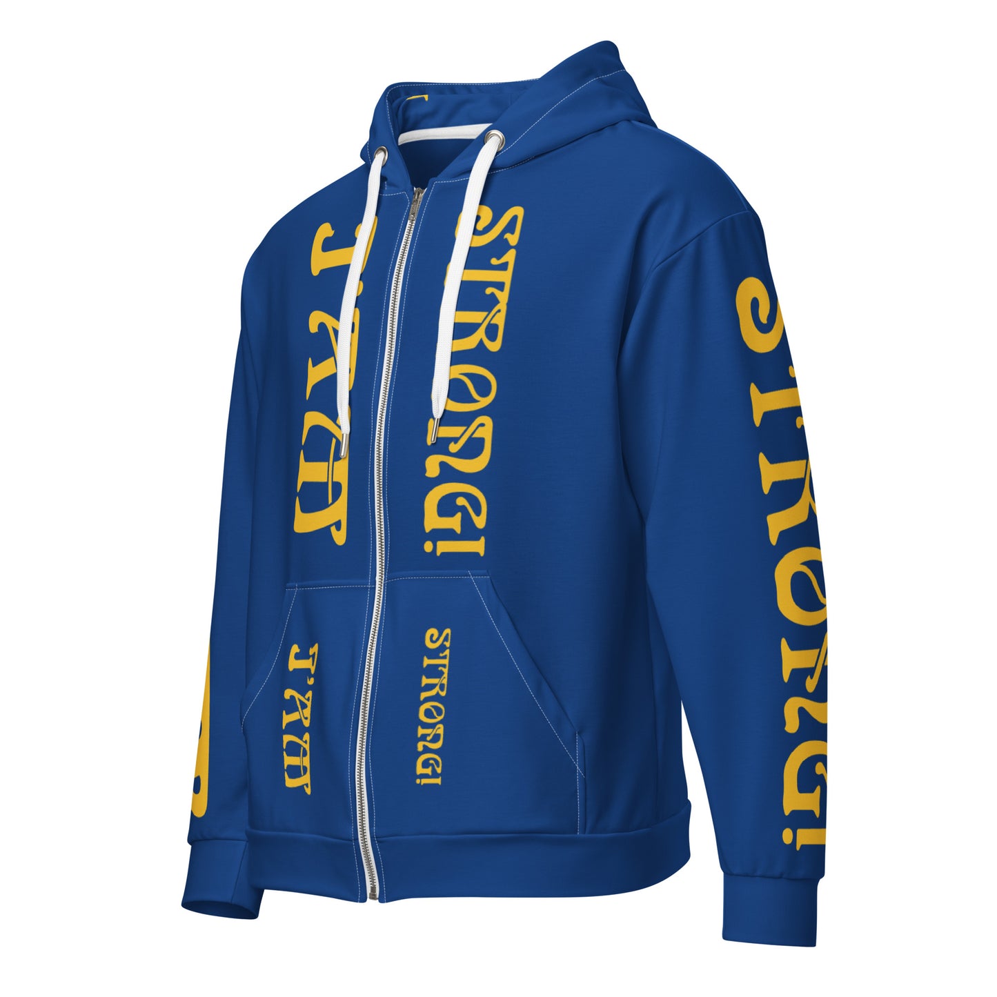 “I’AM STRONG!”Blue Unisex Zip Hoodie W/Yellow Font