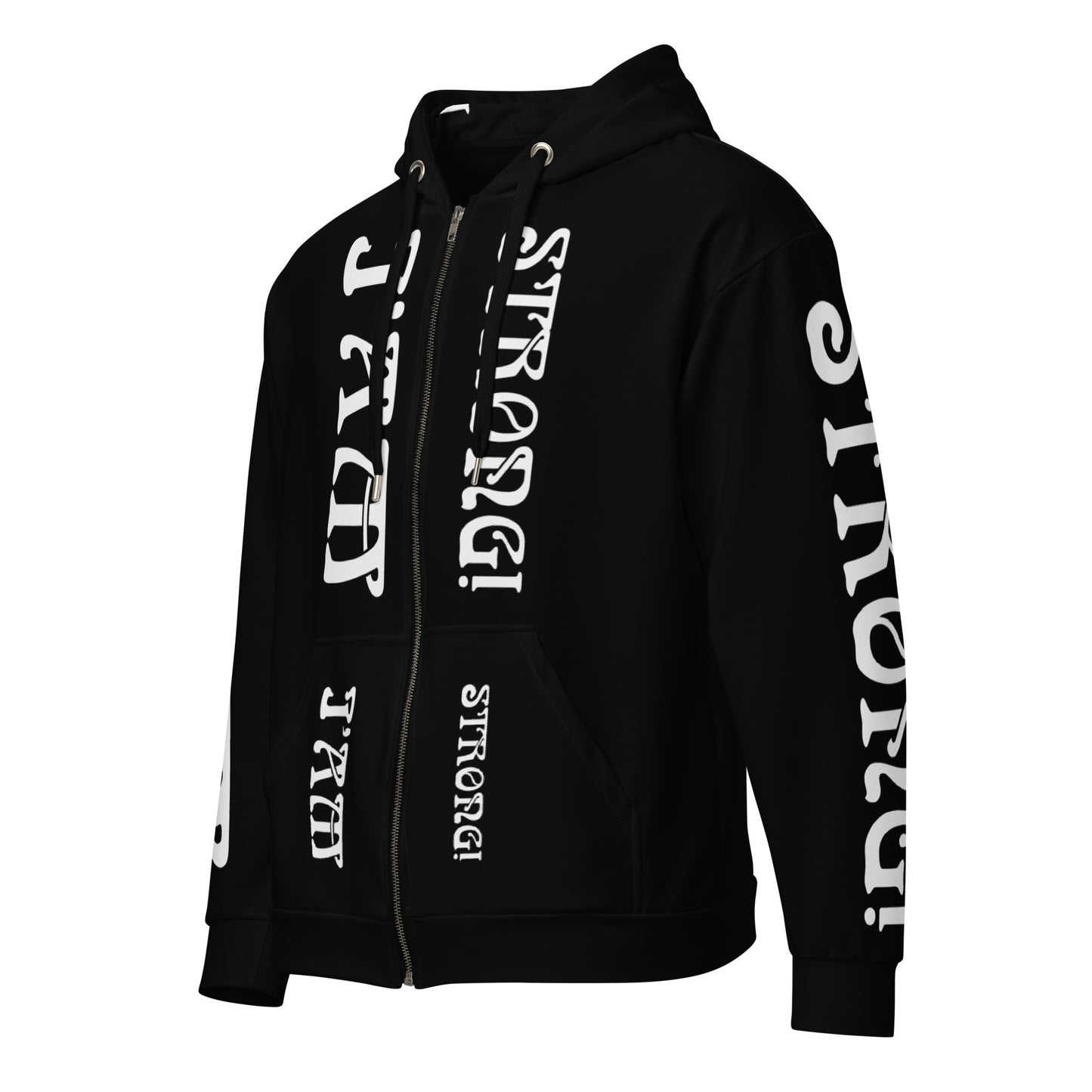 “I’AM STRONG!”Black Unisex Zip Hoodie W/White Font