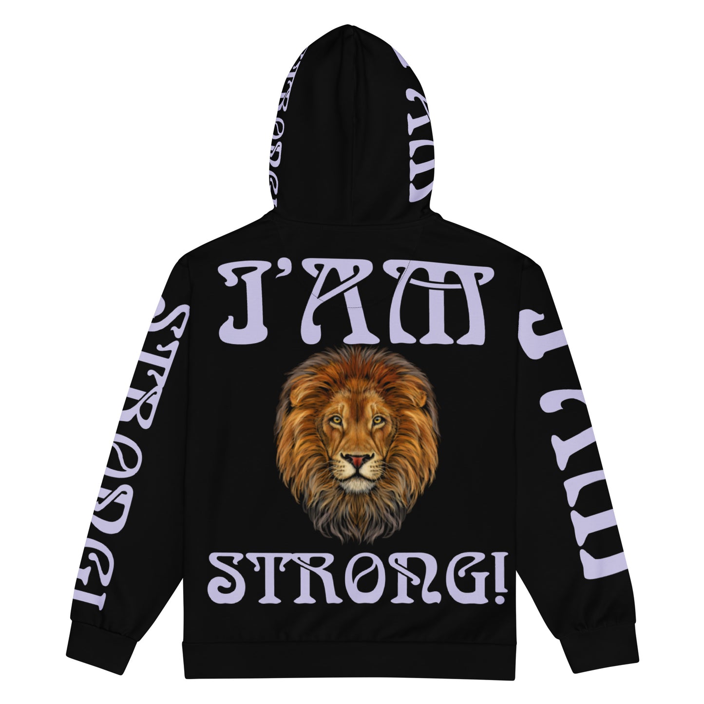 “I’AM STRONG!”Black Unisex Zip Hoodie W/Light Purple Font