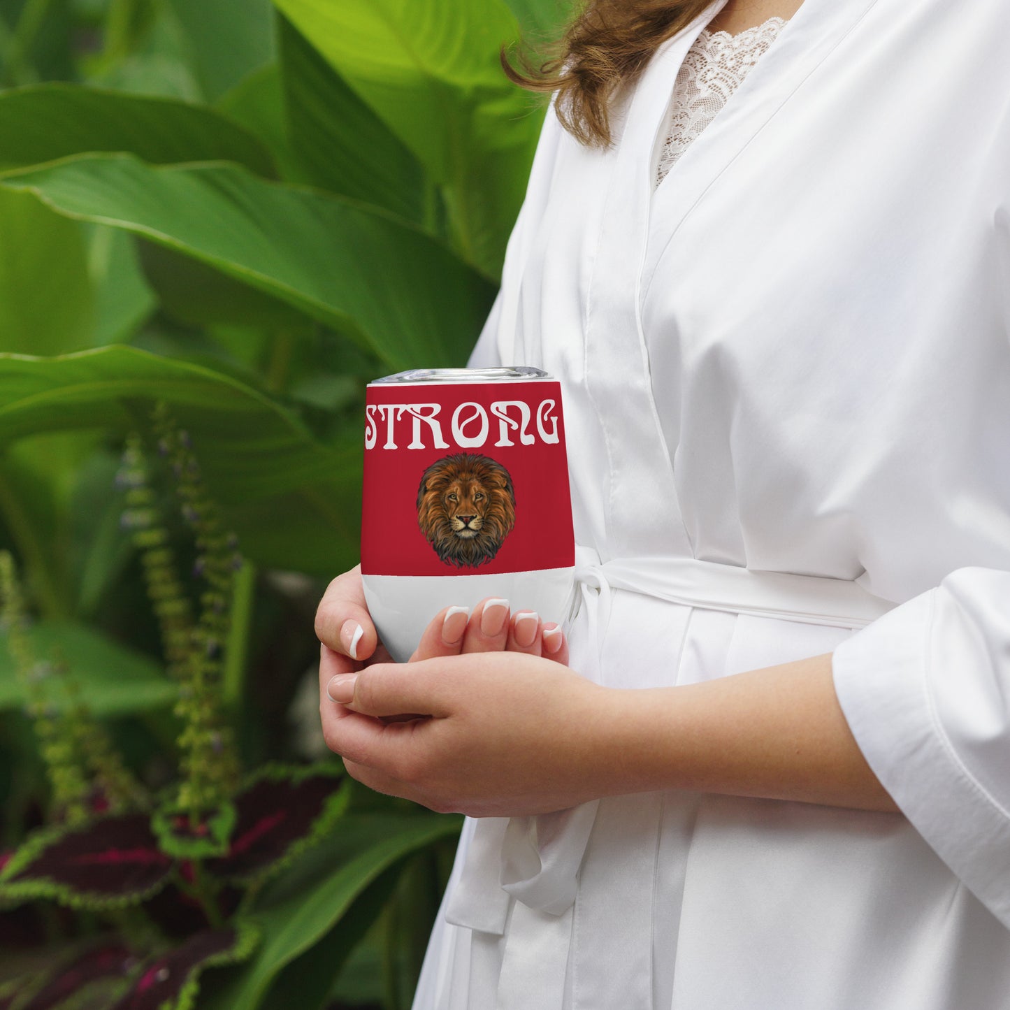 “STRONG”Red Wine Tumbler W/White Font