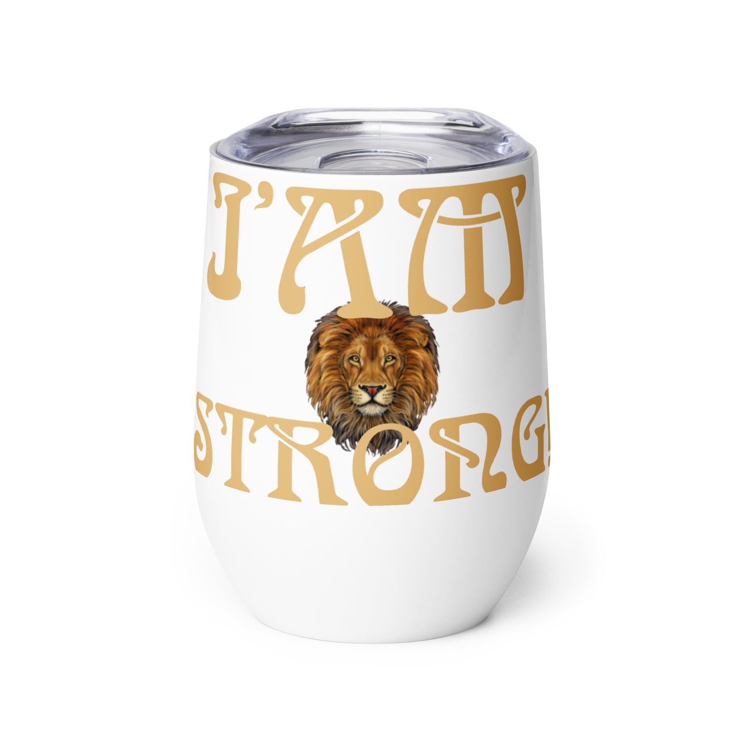 “I’AM STRONG!” White Wine Tumbler W/Fawn Font