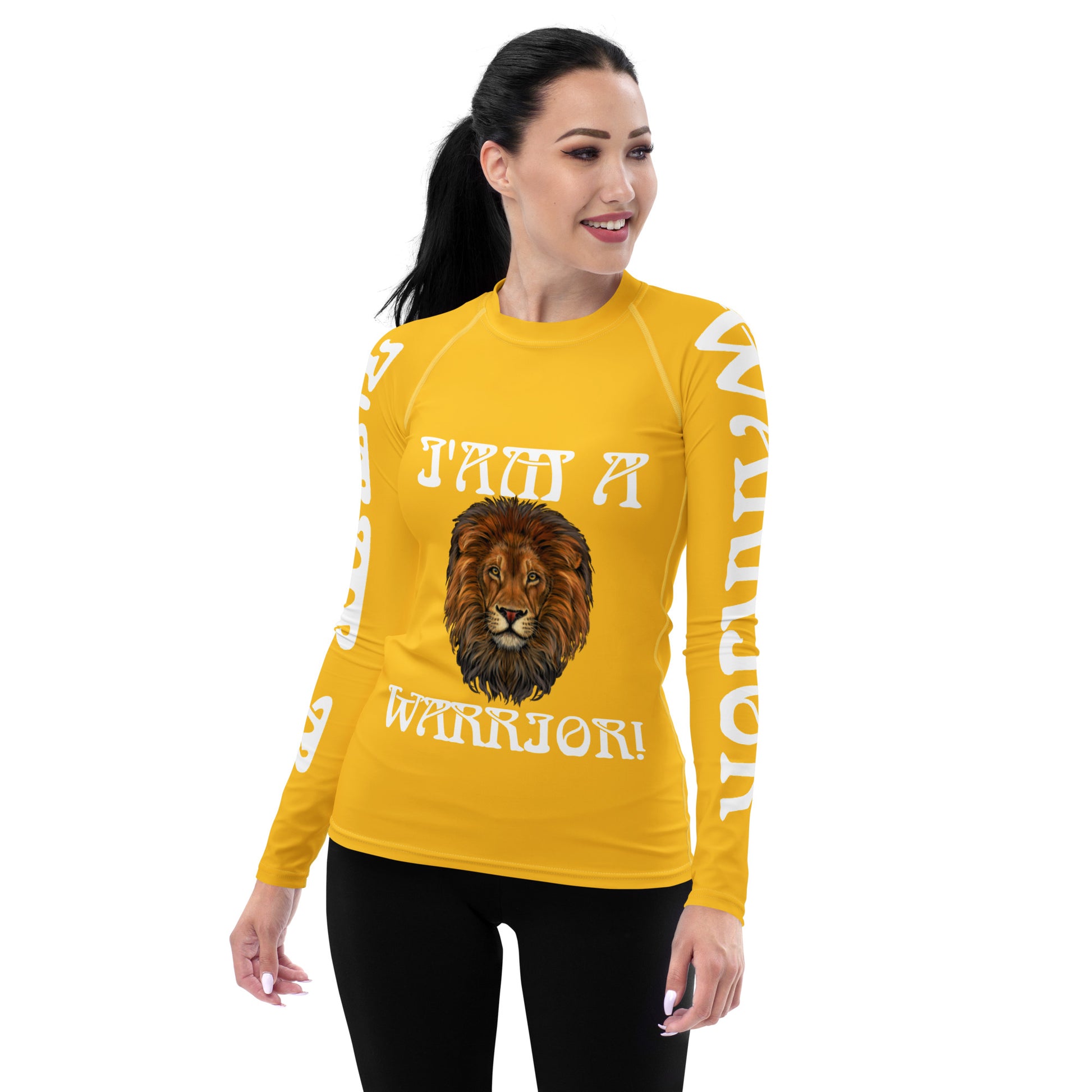 “I’AM A WARRIOR!” Yellow Women's Rash Guard W/White Font