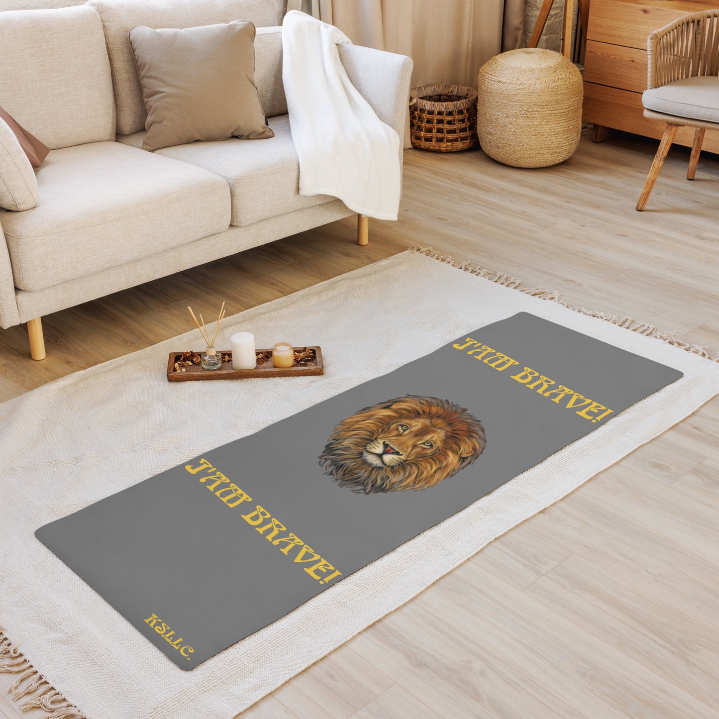 “I’AM BRAVE!”Grey Yoga Mat W/Yellow Font