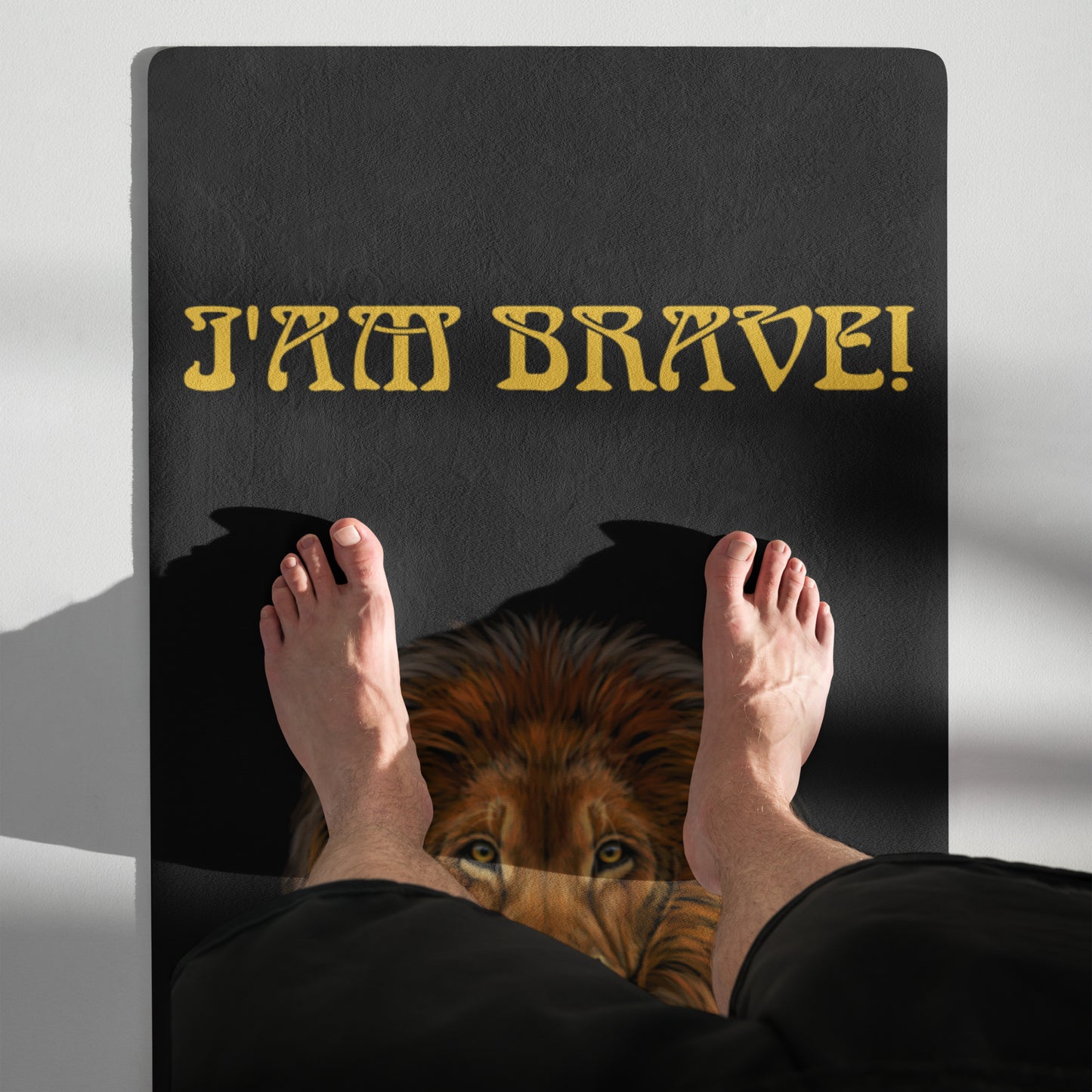 “I’AM BRAVE!”Black Yoga Mat W/Yellow Font